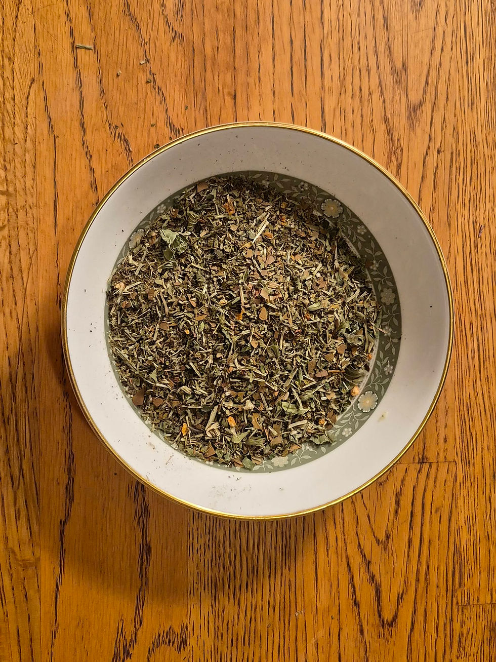 IMMUNE BOOST - rosemary, oregano, thyme, feverfew, mints, dandelion leaf, sencha green tea, wildcrafted chaga mushroom, rosehips, sage, stevia leaf